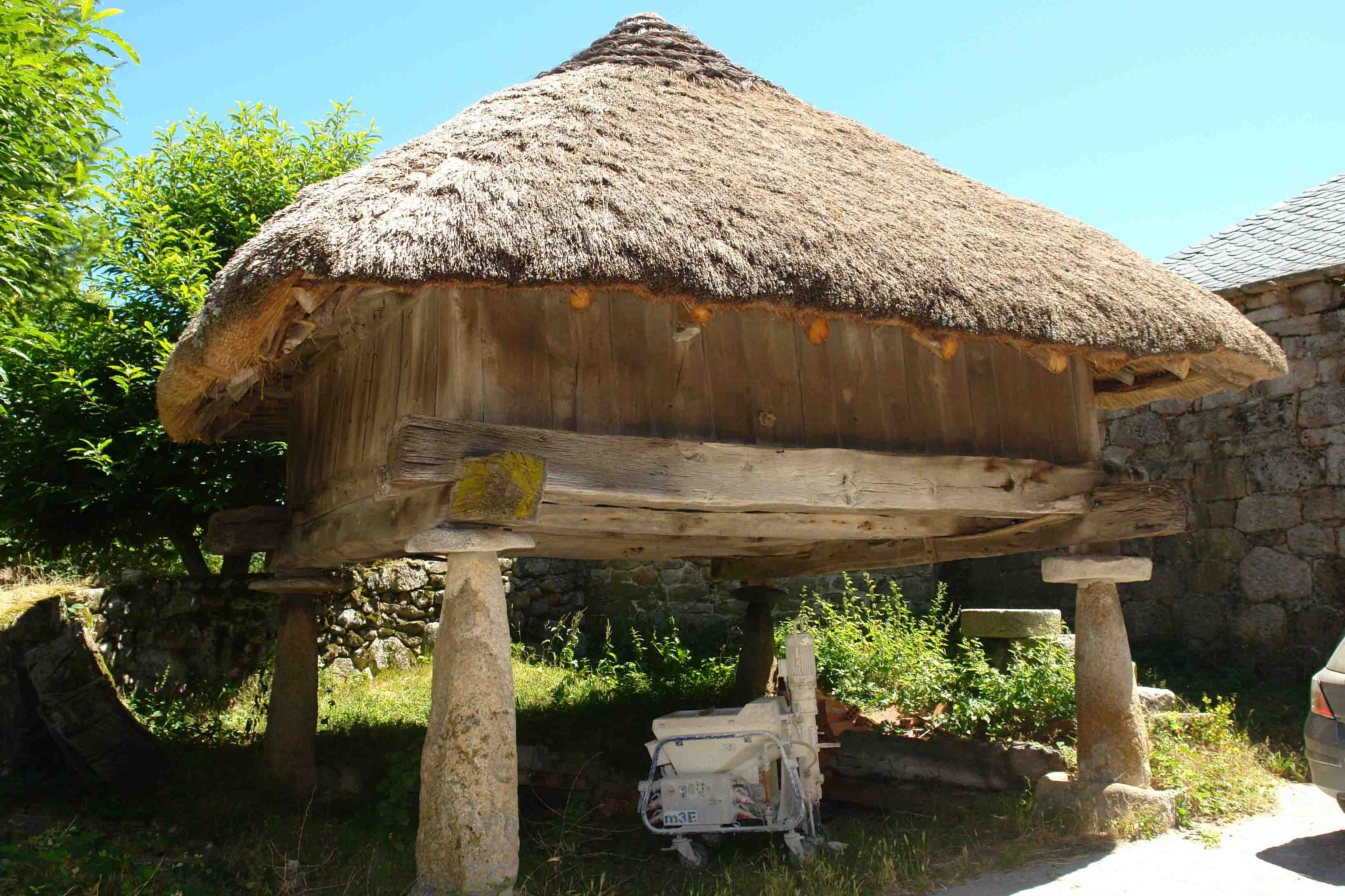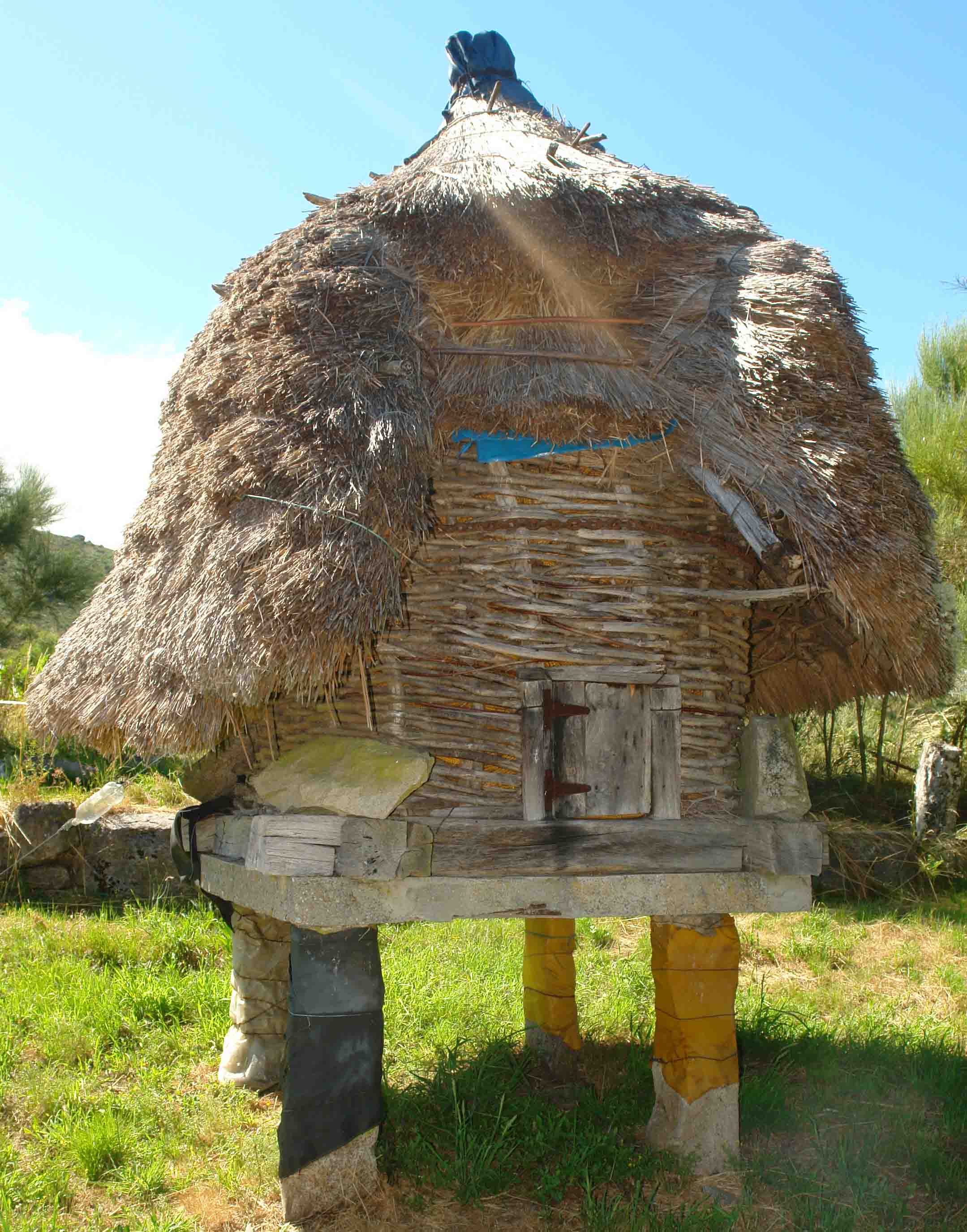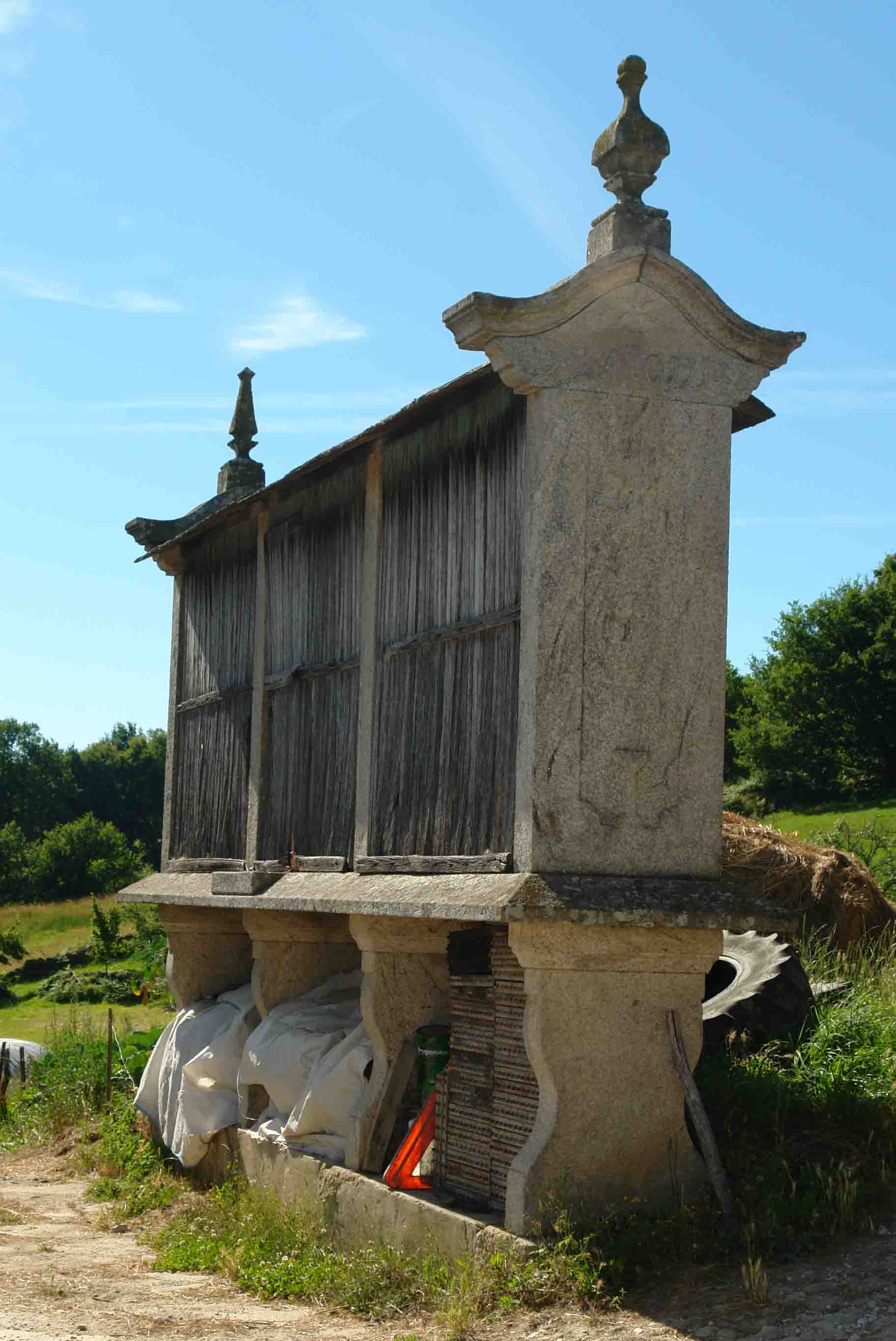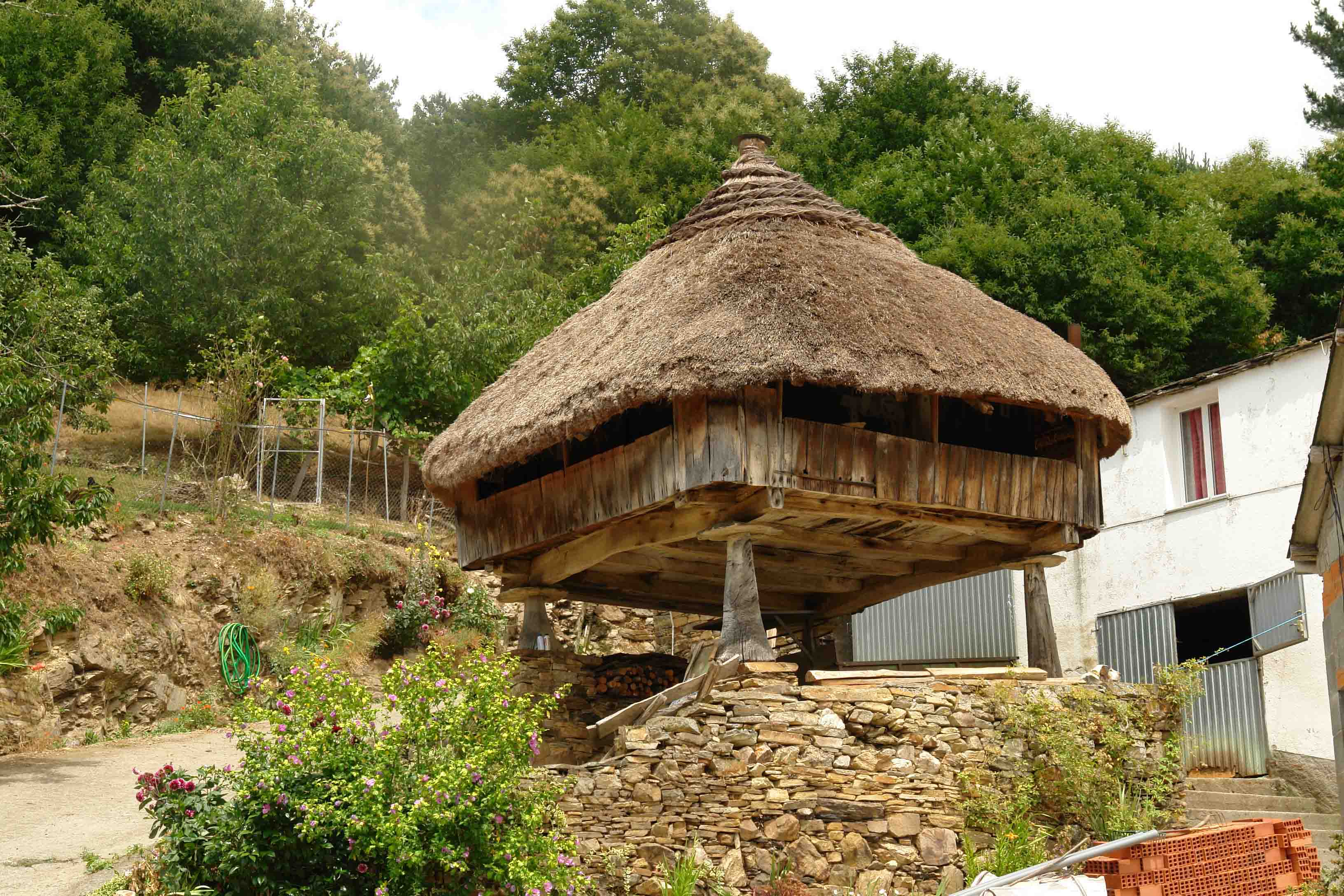 Pueden ser cuadrados y también octogonales. Tienen doble función, un parte interior cuadrada para guardar, trigo,centeno, etc y un corredor exterior a su alrededor donde se guarda el maíz. Se eleva sobre pies de madera o cachotería.