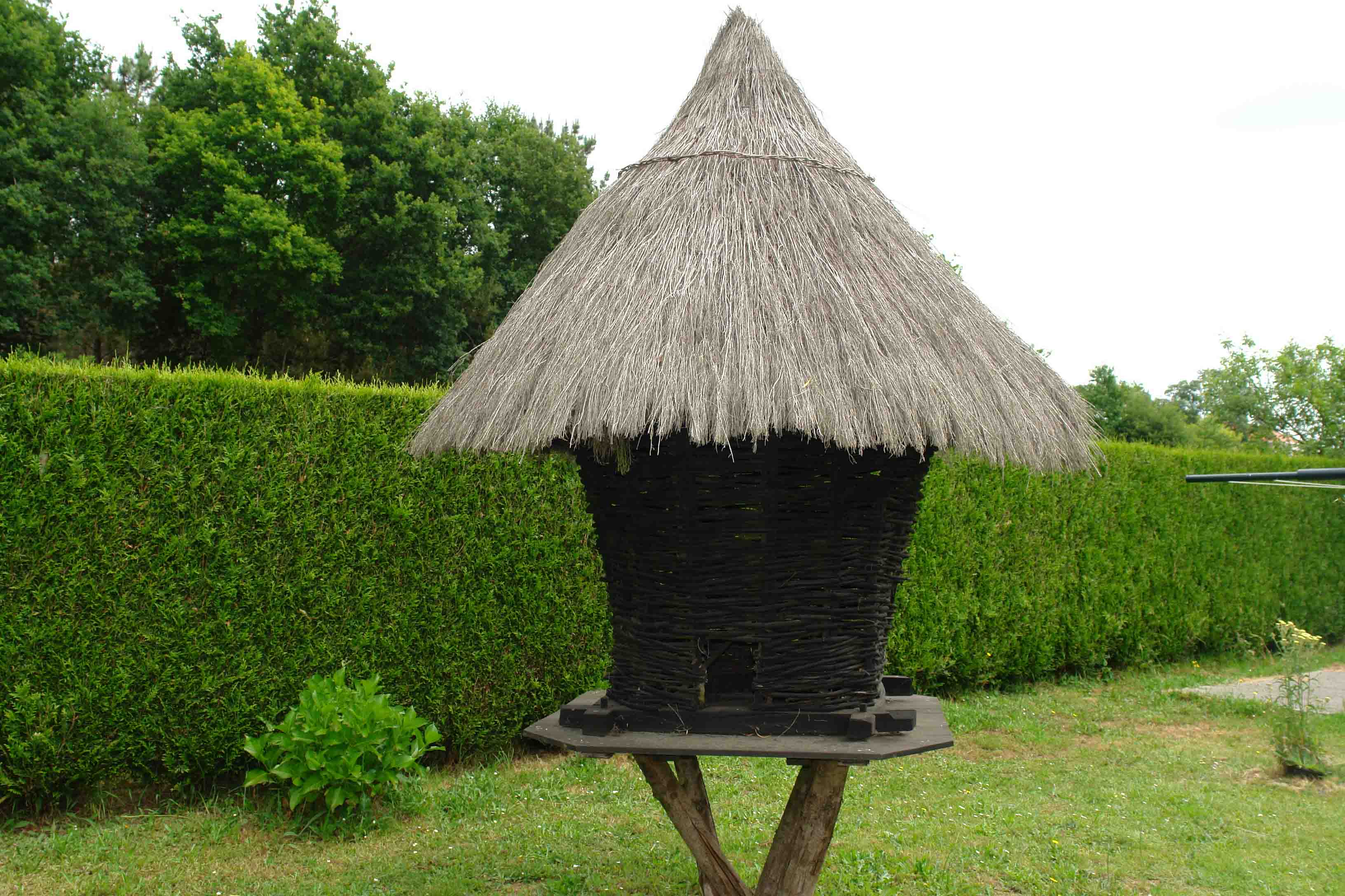 La cubierta es a cuatro aguas, de paja de centeno o de pizarra.